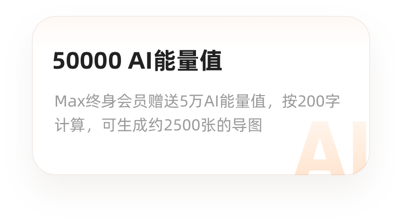 知犀Max大会员是限时提供的 知犀思维导图+ 知犀流程图 一种特惠双终身会员,并额外赠送5万AI能量值,20GB超大云存储空间(思维导图 10GB + 流程图 10GB),7X12小时服务,